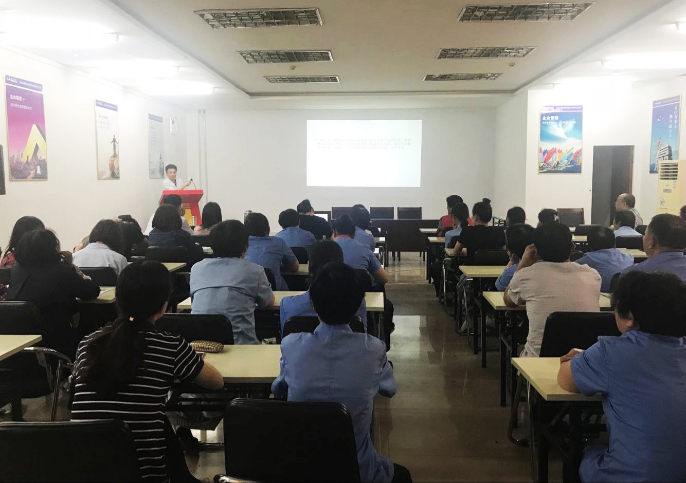 關愛物業服務人員,預防老齡化常見病多發,為降低物業服務人員常見疾病風險,普及常見病預防知識,進一步加強員工健康教育知識及疾病防控意識,引導員工建立健康的生活方式和理念,強化康體保健意識,切實提高員工對心腦血管疾病的自我預防能力,讓員工能健康生活、快樂工作, 5月24日下午,漯河新天地特邀內科專家范小明在辦公樓三樓大會議室舉辦了一次以“心腦血管疾病健康保健知識”為主題的講座,公司各部門員工積極參與,認真聆聽了此次講座。